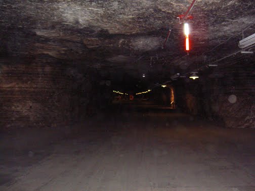 In Hutchinson we went to the Kansas Underground Salt Museum (Susan calls this a pretty dorky name; I agree). The two and a half hour tour took us 650 feet below the green wheat fields to a very surreal world. The scale of the mine is hard to describe and impossible to relate via a small digital camera. After cramming into a small open elevator upon arriving at the bottom, we walked or rode on a train of wagons. The place is vast and hard to fathom. It's all about mining salt mostly for use in animal feed, hide tanning or highway ice melting. The most unexpected surprise was the storage facility that housed immense caches of Hollywood archives. The dry atmosphere and physical reality of being so far below ground provides security for film and movie treasures. From film reels to scripts and even costumes, this vault looks like that last scene in Indiana Jones where they had stored the Arc of the Covenant. They also store endless boxes of government records.