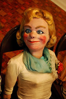 As mentioned above, even though Jen was very informative and entertaining, there was that underlying creepy feeling. Some of the dummies are genuinely spooky. I swear to God some of their eyes followed me around the room. I can also guarantee you that at night these little people are moving about, partying and planning the take over of the world. Don't believe me, take a look at couple of the portraits below, i.e., Check out #10 -- this guy makes Jack Nicholson's "Joker" or "Here's.... Johnny (The Shining) look like a kitten. And look at #12 - Sweet Mother Mary, that thing is horrific. Then what about #32 -- if the dummie thing is not enough, how about adding in the scary monkeys from the Wizard of Oz -- jeeez!! Take a look at #28 -- Ever wonder what Michael Jackson was hoping for with all the surgeries and "whitening"? Keep in mind this figure was from the 30s or 40s.The winner, though, goes to one little guy, #33 -- the freakin' thing has human hair and teeth; not good. You can feel the rabies and mayhem wish just looking out it's psychotic little eyes..... OMG!!! Susan -- creepy yes but the story is -- the vent guy dressed like a woman nurse and the dummy was the patient in a bed on stage and the audience didn't know the child was not real until "she" pulled him from the bed. But so strange I didn't want to get close to him.