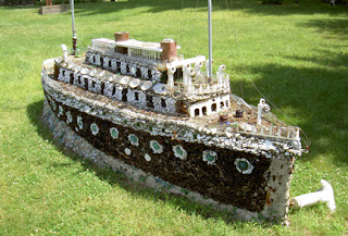 In nearby Cataract -- it was hard to see on the map (har) but we eventually found the correct side road. Apparently there was some sort of collective conscious epiphany that fell upon many Wisconsonites because there seem to be a plethora of this particular type of artistic expression. This site was infused with a peaceful spirit. We enjoyed exploring the site with some fellow "Wander Wisconsin" folks. Their 5 year-old-son immediately approached R. and said he wanted to show me something. So, off I went with my diminutive guide to a small room underneath a highly embellished glass and concrete wall. It was very cool to see this young art lover's reaction to the world created by Paul and Matilda Wegner. Our time there was pastoral and idyllic.